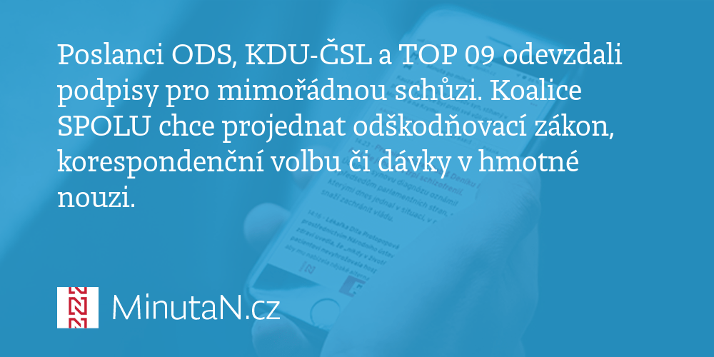 Poslanci totiž neschválili program schůze, a tak mimořádné jednání ve čtvrtek skončilon, aniž začalo. Koalice spolu určila podmínky pro jednání o podpoře stavu nouze. Jednání o odškodňování těch, kterým epidemie koronaviru nabourala podnikání, se ve sněmovně nakonec nekonalo.. Ministerstvo hospodárstva tvrdí, že odškodňovací zákon je v rukách ministerstva financií, rezort financií zase tvrdí opak.